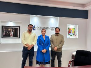 La presidenta municipal, Maestra Anabel Guerrero, acompañada del regidor Raúl López y el director del OROMAPAS, Ing. Esteban Teokari Rocha