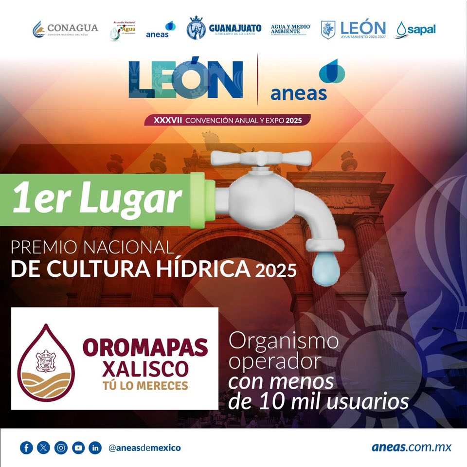 Nos llena de orgullo compartir que, por primera vez en la historia de Xalisco, el Organismo Operador Municipal de Agua Potable, Alcantarillado y Saneamiento de Xalisco, Nayarit ha sido reconocido a nivel nacional por su compromiso con el cuidado del agua, al ser seleccionado ganador del Premio Nacional de Cultura Hídrica 2025.